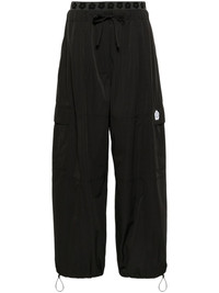 Boke 2.0 drawstring cargo trousers Highlights - Black - Panelled design - Boke 2.0 logo applique at the leg - Wide leg - High-waisted - Boke 2.0 elasticated waistband - Drawstring fastening waist - Two diagonal pockets to the sides - Two side cargo pockets - Drawstring hem Imported Composition Polyester 64%, Cotton 36% SIZE & FIT Model measurements Height 5 ft 10 in(1.78 m) Bust/Chest 29.92 in(76 cm) Hips 34.64 in(88 cm) Waist 23.62 in(60 cm) FittingInformation Designed with a wide-leg cut, these trousers allow for a close fit at the waist and offer a loose and roomy fit over the leg The internal drawstring at the hem allows for fitted preferences at the ankle Made from a midweight non-stretch fabric This piece fits true to size – take your usual size Washing instructions Machine Wash