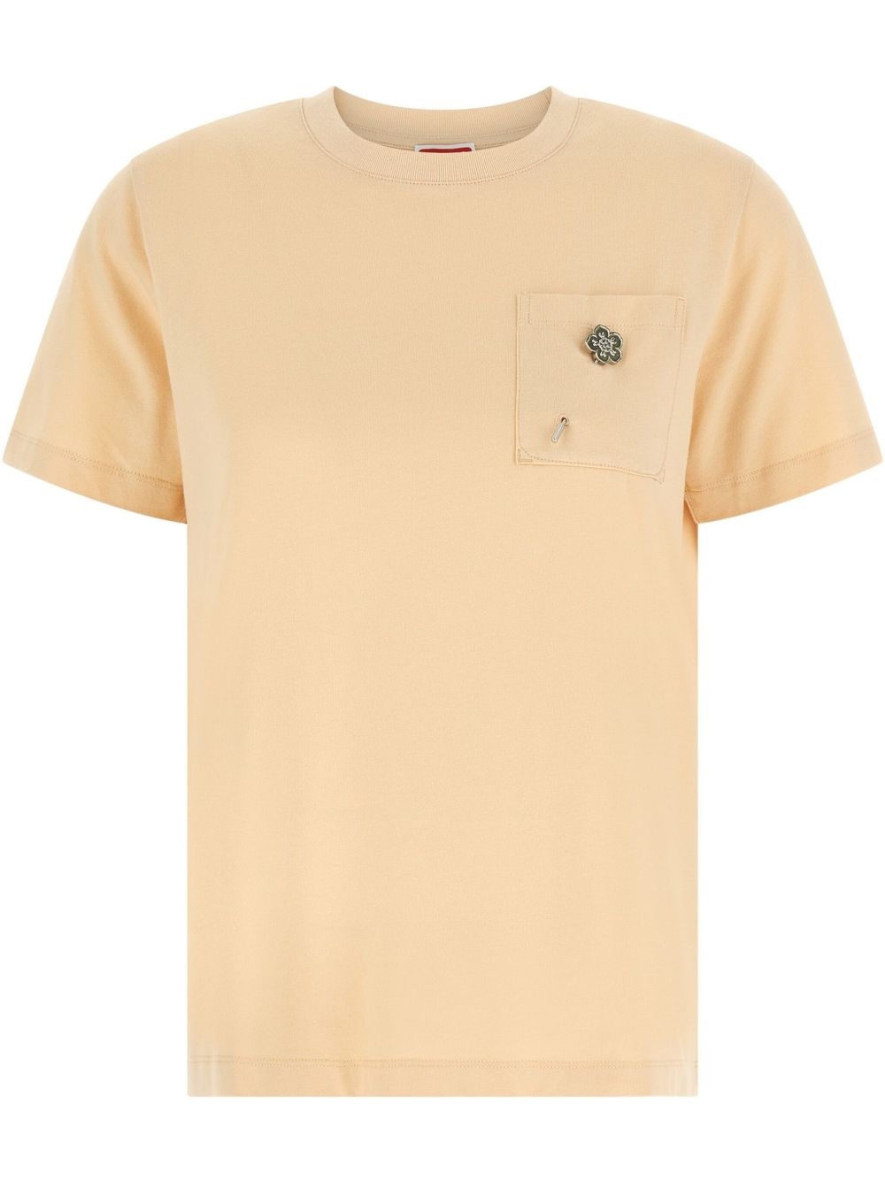 Boke Flower T-shirt Highlights - Sand beige - Crew neck - Chest patch pocket - Short sleeves - Brooch detail Imported Composition Cotton 100%