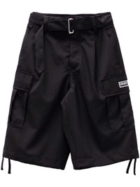 cargo tailored shorts Highlights - Black - Virgin wool - Interwoven design - Pleat detailing to the front - Dart detailing to the rear - Logo patch to the side - Logo-engraved buttons - Belt loops - Mid-rise - Below-knee length - Two side inset pockets - Two rear button-fastening pockets - Two side cargo pockets - Button fly fastening - Front hook and eye fastening - Detachable and adjustable waist belt - Drawstring hem - Unlined Imported Composition Virgin Wool 100% Washing instructions Read Manufacturer Guidelines