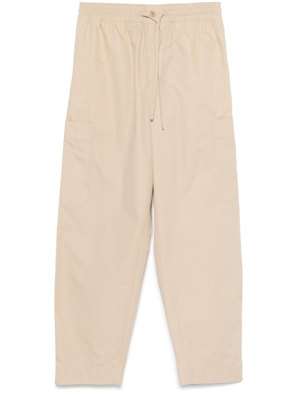 cargo trousers Highlights - Light beige - Concealed fly and button fastening - Elasticated drawstring waistband - Two side inset pockets - Rear button-fastening pocket Imported Composition Outer: Cotton 100% Lining: Cotton 100% SIZE & FIT Model measurements Height 6 ft 1 in(1.85 m) Bust/Chest 35.82 in(91 cm) Hips 37.79 in(96 cm) Waist 29.13 in(74 cm) FittingInformation Designed for a tapered leg, offering a loose unrestricted fit over the leg with a closer fit towards the ankle The elasticated waist allows for a comfortable fit Made from a midweight non-stretch fabric, this piece offers minimal elasticity when worn