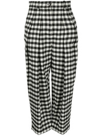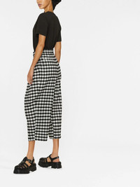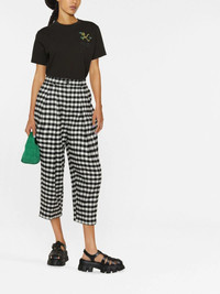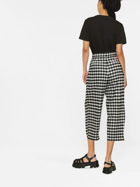 checkerboard-print culotte-length trousers black/white linen blend checkerboard print two rear button-fastening pockets two side slit pockets logo patch to the rear cropped leg Imported Composition Outer: Linen/Flax 45%, Virgin Wool 41%, Polyamide 14% Lining: Cotton 100%, Acetate 60%, Cupro 40% SIZE & FIT Model measurements Height 5 ft 10 in(1.78 m) Bust/Chest 30.31 in(77 cm) Hips 36.61 in(93 cm) Waist 24.8 in(63 cm) FittingInformation This piece fits true to size. We recommend you get your regular size Designed to be fitted at the waist and hips, loose over the leg Made with a mid-weight non-stretch fabric Washing instructions Dry Clean Only
