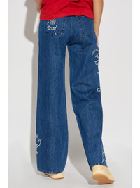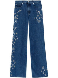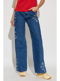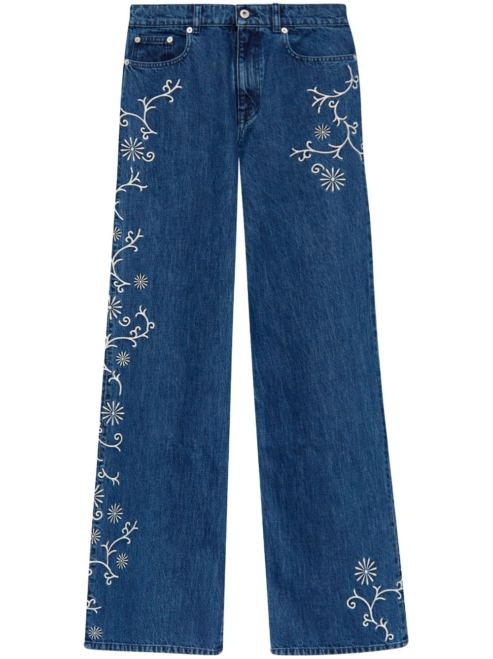 cotton wide-leg jeans Highlights - Blue - Cotton - Denim - Botanical embroidery - Wide leg - Belt loops - Classic five pockets - Front button and zip fastening Imported Composition Cotton 100%