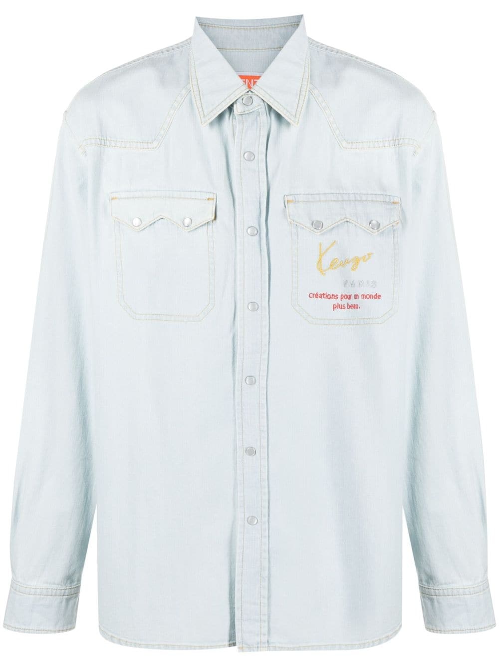 Cowboy logo-embroidered denim shirt Highlights - Light blue - Cotton - Denim - Western style - Embroidered logo to the rear - Embroidered logo at the chest - Pointed flat collar - Front press-stud fastening - Two press-stud fastening side pockets - Long sleeves - Press-stud fastening cuffs - Straight hem Imported Composition Cotton 100%, Polyester 100% SIZE & FIT Model measurements Height 6 ft 2 in(1.88 m) Bust/Chest 37.79 in(96 cm) Hips 35.82 in(91 cm) Waist 29.92 in(76 cm) FittingInformation Designed for a relaxed fit, this piece allows for comfort and movement when worn Made from a midweight non-stretch fabric This piece fits true to size – take your usual size Measurement CHEST 45 in(114.3 cm) SLEEVE LENGTH 24.01 in(61 cm) Shoulder Width 17.99 in(45.7 cm) WAIST 42 in(106.7 cm) Washing instructions Machine Wash