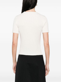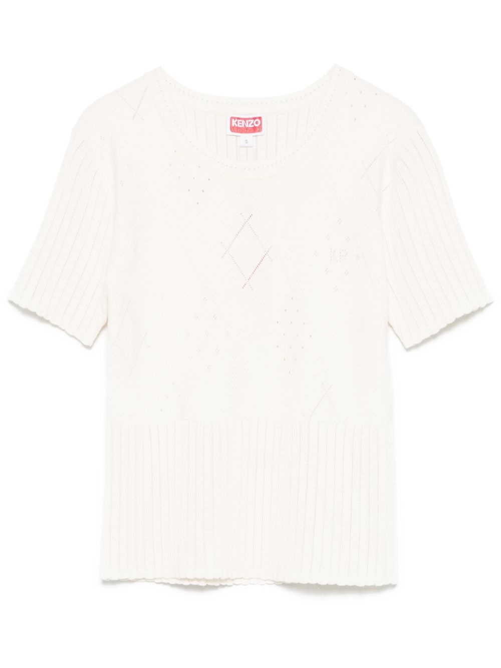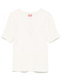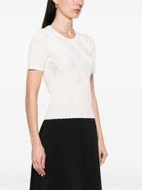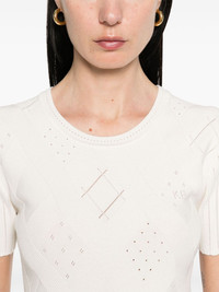 diamond-pattern T-shirt Highlights - White - Perforated logo detail - Crew neck - Scallop edge Imported Composition Viscose 86%, Polyester 14% SIZE & FIT Model measurements Height 5 ft 10 in(1.78 m) Bust/Chest 33.46 in(85 cm) Hips 36.22 in(92 cm) Waist 23.22 in(59 cm) FittingInformation Designed for a close fit throughout Made with a midweight knit, this piece offers some stretch