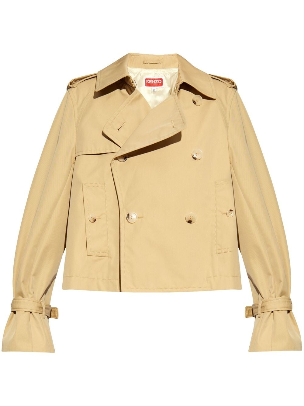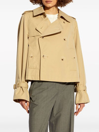 double-breasted flared-sleeve jacket Highlights - Beige - Cotton blend - Gabardine weave - Double-breasted button fastening - Logo patch to the rear - Epaulettes - Cut-out sleeves - Long sleeves - Belted cuffs - Straight hem Imported Composition Outer: Cotton 64%, Polyamide 36% Lining: Viscose 100%