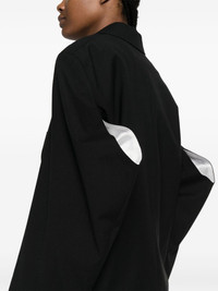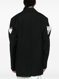 double-breasted tailored blazer Highlights - Black - Virgin wool blend - Tailored design - Notched lapels - Chest welt pocket - Long sleeves - Cut-out sleeves - Logo patch at the sleeve - Buttoned cuffs - Two front flap pockets - American rear vent - Internal jetted pocket - Full lining - Double-breasted button fastening Imported Composition Outer: Virgin Wool 76%, Cotton 23%, Spandex/Elastane 1% Lining: Viscose 100% SIZE & FIT Model measurements Height 5 ft 11 in(1.8 m) Bust/Chest 31.49 in(80 cm) Hips 36.61 in(93 cm) Waist 24.4 in(62 cm) FittingInformation Designed for an oversized fit, offering additional room throughout The vented hem offers movement at the rear Made from a midweight fabric This piece fits true to size – take your usual size Washing instructions Dry Clean Only