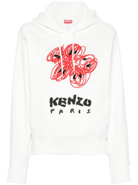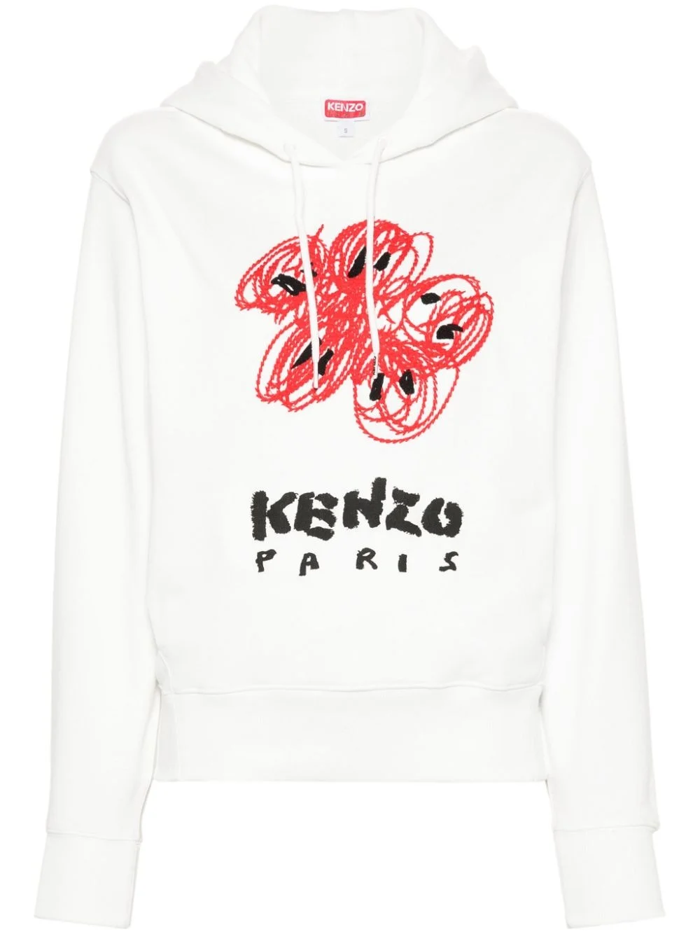 Drawn Flowers embroidered hoodie Floral motifs permeate KENZO's collections as a nod to the brand's Japanese roots. A case in point, this white Drawn Flowers hoodie is cut from cotton fleece to a relaxed silhouette decorated with an embroidered sketch-style reinterpretation of the iconic Boke Flower inspired by a 1950s American tradition in which students drew on each other's clothing at graduation ceremonies. It is finished with a black logo print underneath the red blossom, mimicking a textured look. Highlights - White - Cotton - Jersey texture - Slouchy drawstring hood - Drop shoulder - Floral embroidery to the front - Logo print to the front - Long sleeves with ribbed cuffs - Two side inset pockets - French terry lining - Ribbed hem - Pull-on style Imported Composition Cotton 100% SIZE & FIT Model measurements Height 5 ft 11 in(1.8 m) Bust/Chest 33.07 in(84 cm) Hips 37 in(94 cm) Waist 25.59 in(65 cm) FittingInformation Designed for a relaxed fit, this piece allows for comfort and movement when worn Made from a midweight non-stretch fabric, this piece offers minimal elasticity when worn This piece fits true to size – take your usual size Washing instructions Machine Wash