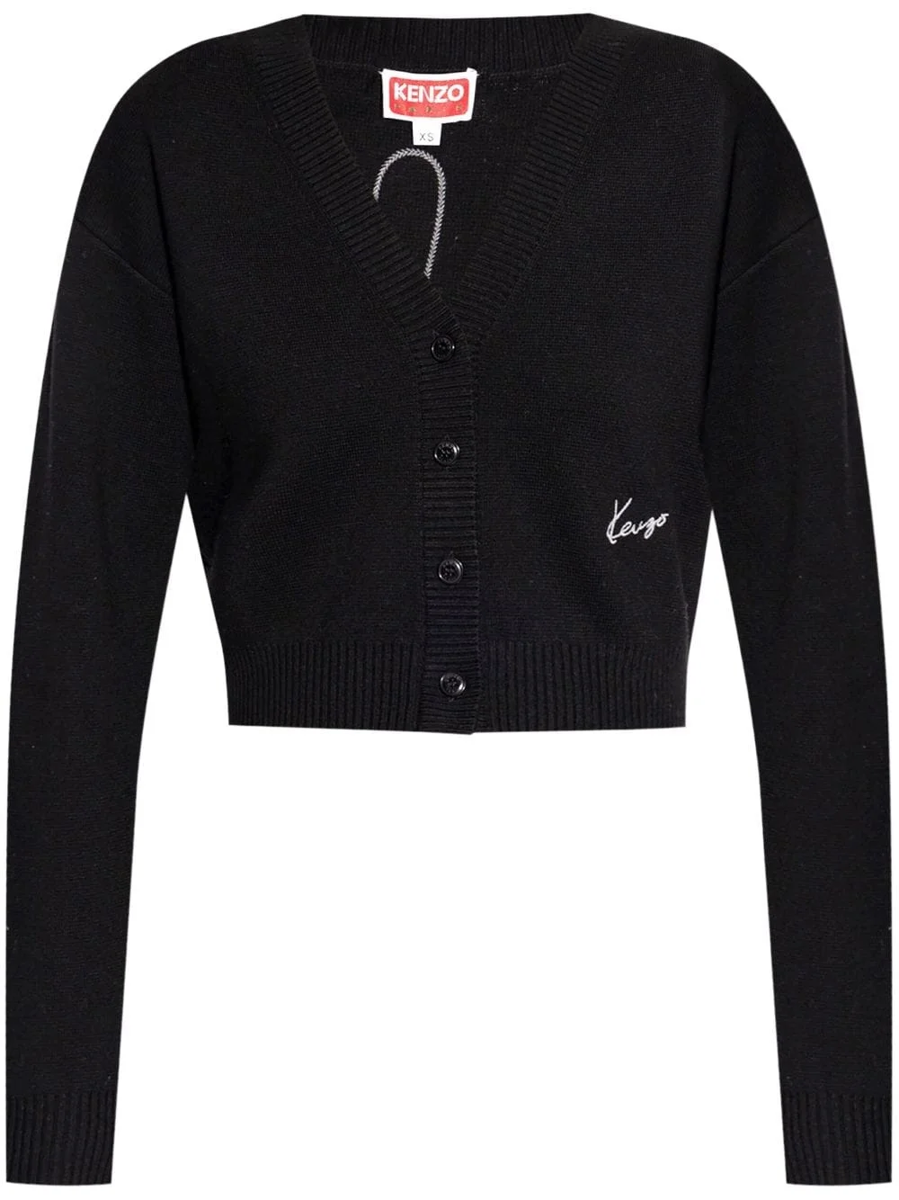 Embroidered-flower cardigan Highlights - Black - Wool - Embroidered motif - Embroidered design - Button fastening - V-neck - Elasticated cuffs - Elasticated hem - Straight hem Imported Composition Wool 100%