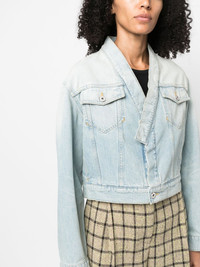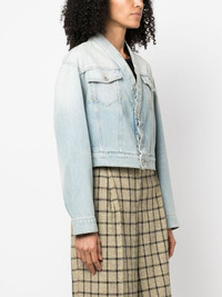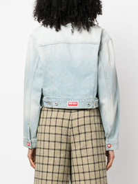 faded-effect cropped denim jacket Highlights - Light blue - Cotton - Faded effect - Signature boke flower motif - Logo patch to the rear - Shawl lapels - Concealed front button fastening - Two button-fastening chest pockets - Long sleeves - Buttoned cuffs - Straight hem - Cropped Made in Italy Composition Cotton 100% SIZE & FIT Model measurements Height 5 ft 10 in(1.78 m) Bust/Chest 33.07 in(84 cm) Hips 36.61 in(93 cm) Waist 24.8 in(63 cm) FittingInformation Designed to be unstructured, offering a loose fit throughout The adjustable tabs allow for fitted preferences Sturdy and hard-wearing, this denim piece offers no stretch This piece fits true to size – take your usual size Washing instructions Machine Wash