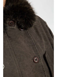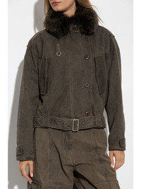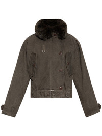 faux fur jacket Highlights - Grey - Cotton - Front button fastening - Long sleeves - Faux-fur detail - Buttoned cuffs - Logo patch to the rear - Cropped - Two side flap pockets Imported Composition Cotton 100% Washing instructions Read Manufacturer Guidelines