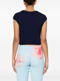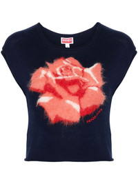 floral intarsia-knit top Highlights - Midnight blue - Cotton blend - Floral intarsia knit - Round neck - Sleeveless - Embroidered logo to the front - Raw-cut hem Imported Composition Cotton 84%, Alpaca Wool 6%, Nylon 5%, Wool 4%, Lycra 1% SIZE & FIT Model measurements Height 5 ft 10 in(1.77 m) Bust/Chest 31.88 in(81 cm) Hips 36.22 in(92 cm) Waist 24.01 in(61 cm) FittingInformation Designed for a slim fit that sits just away from the body offering a close yet comfortable fit Made with a midweight knit, this piece offers some stretch This piece fits true to size – take your usual size Washing instructions Machine Wash