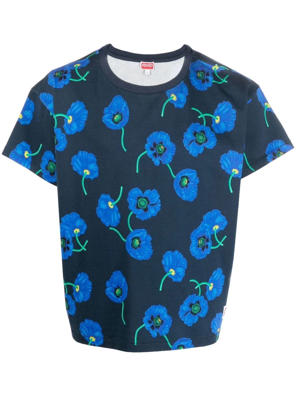 floral-print cotton T-shirt floral-print cotton T-shirt from KENZO featuring midnight blue, electric blue, green, cotton, jersey knit, all-over floral print, crew neck, short sleeves and straight hem. Imported Composition Cotton 100% SIZE & FIT Model measurements Height 6 ft 2 in(1.88 m) Bust/Chest 37.79 in(96 cm) Hips 38.58 in(98 cm) Waist 29.52 in(75 cm) FittingInformation This piece fits true to size. We recommend you get your regular size Cut for a relaxed fit Made with a mid-weight fabric