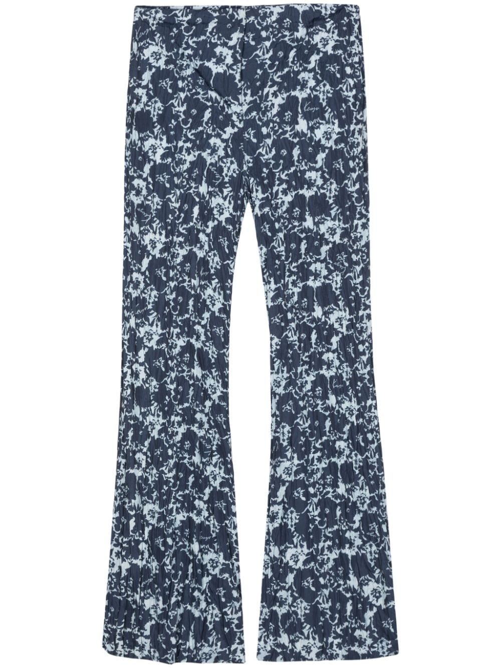 Flower Camo flared trousers Highlights - Navy blue/light blue - Crinkled finish - All-over floral and logo print - Two side inset pockets - Full-length - Two rear patch pockets - Flared - Concealed front button, hook and zip fastening Imported Composition Outer: Polyester 100% Lining: Acetate 60%, Cupro 40%