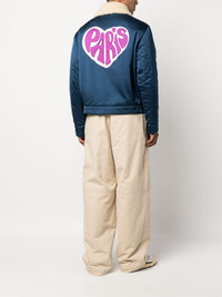 heart-embroidery shearling collar jacket Highlights - Royal blue - Cotton blend - Embroidered logo at the chest - Text embroidery to the rear - Heart motif - Shearling collar - Front button fastening - Long sleeves - Two front welt pockets - Straight hem Imported Composition Outer: Viscose 100%, Polyester 66%, Acrylic 34% Lining: Polyester 50%, Cotton 50% SIZE & FIT Model measurements Height 6 ft 2 in(1.88 m) Bust/Chest 36.61 in(93 cm) Hips 37.79 in(96 cm) Waist 28.74 in(73 cm) Measurement CHEST 51.96 in(132 cm) SLEEVE LENGTH 25.98 in(66 cm) LENGTH 25.98 in(66 cm) WAIST 49.6 in(126 cm) FittingInformation Designed for a regular fit, allowing for a comfortably loose fit throughout the body Made from a padded non-stretch fabric, giving it no natural elasticity This piece fits true to size – take your usual size