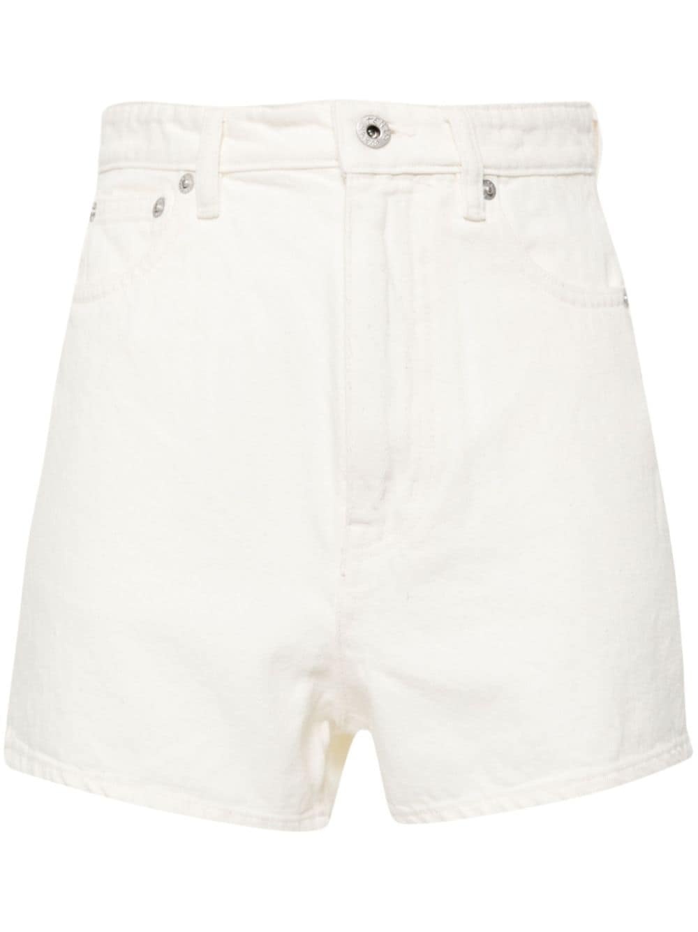 high-rise cotton shorts Highlights - White - Cotton - Denim - High-rise - Concealed fly and button fastening - Classic five pockets - Logo patch to the rear - Thigh-high Imported Composition Outer: Cotton 100% Lining: Polyester 65%, Cotton 35% Washing instructions Machine Wash