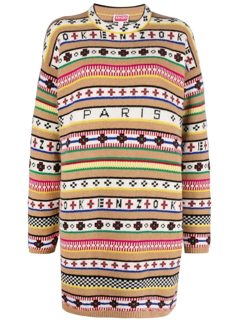 intarsia-knit jumper dress Kenzo's jumper dress is accented by the intricate Fair Isle intarsia-knit design - a recurring theme throughout the AW22 knitwear. It's spun from a plush combination of wool and cotton yarns for a soft handle. Made in Italy Composition Wool 69%, Cotton 31% SIZE & FIT Model measurements Height 5 ft 10 in(1.77 m) Bust/Chest 32.67 in(83 cm) Hips 35.43 in(90 cm) Waist 23.62 in(60 cm) Measurement HIPS 48.03 in(122 cm) LENGTH 32.67 in(83 cm) WAIST 48.03 in(122 cm) FittingInformation This piece fits true to size. We recommend you get your regular size Cut for a loose fit Made with a mid-weight fabric Washing instructions Hand Wash