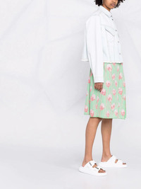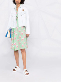 K-Tiger cropped denim jacket An updated version of its signature big-cat motif, Kenzo's K-Tiger print adorns much of its SS22 collection, including this frayed-edge denim jacket. Debossed onto a leather patch at the chest of the cropped silhouette, the relaxed design highlights the brand's love of motifs. Highlights - Faded blue - Organic cotton - Signature tiger head motif - Logo patch at the chest - Contrast stitching - Frayed edge - Cropped - Front press-stud fastening - Straight-point collar - Long sleeves Imported Composition Cotton 100% SIZE & FIT Model measurements Height 5 ft 10 in(1.77 m) Bust/Chest 31.49 in(80 cm) Hips 36.22 in(92 cm) Waist 22.44 in(57 cm) FittingInformation This piece fits true to size. We recommend you get your regular size Cut for a loose fit Made with a mid-weight non-stretch fabric Washing instructions Machine Wash