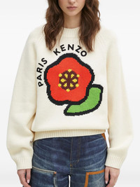 Kenzo Pop flower-applique jumper Highlights - Off-white - Red flower applique - Green leaf applique - Paris lettering - Round neck - Raglan sleeves Imported Composition Wool Blend 92%, Cotton 7%, Nylon 1% Washing instructions Hand Wash