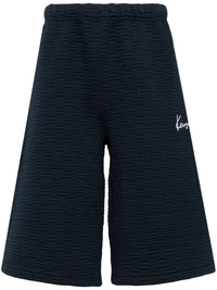 Kenzo Weave bermuda shorts Highlights - Midnight blue - Patterned jacquard - Embroidered logo at the leg - Mid-rise - Elasticated waistband with internal drawstring - Wide leg - Two side slit pockets - Rear patch pocket - Knee-length Imported Composition Polyester 73%, Cotton 26%, Elastane 1% SIZE & FIT Model measurements Height 6 ft 3 in(1.9 m) Bust/Chest 35.03 in(89 cm) Hips 36.61 in(93 cm) Waist 29.13 in(74 cm) FittingInformation Designed for relaxed fit, offering a comfortable loose fit over the leg The elasticated waist allows for a comfortable fit Made from a midweight stretch fabric, this piece offers elasticity and flexibility when worn This piece fits true to size – take your usual size