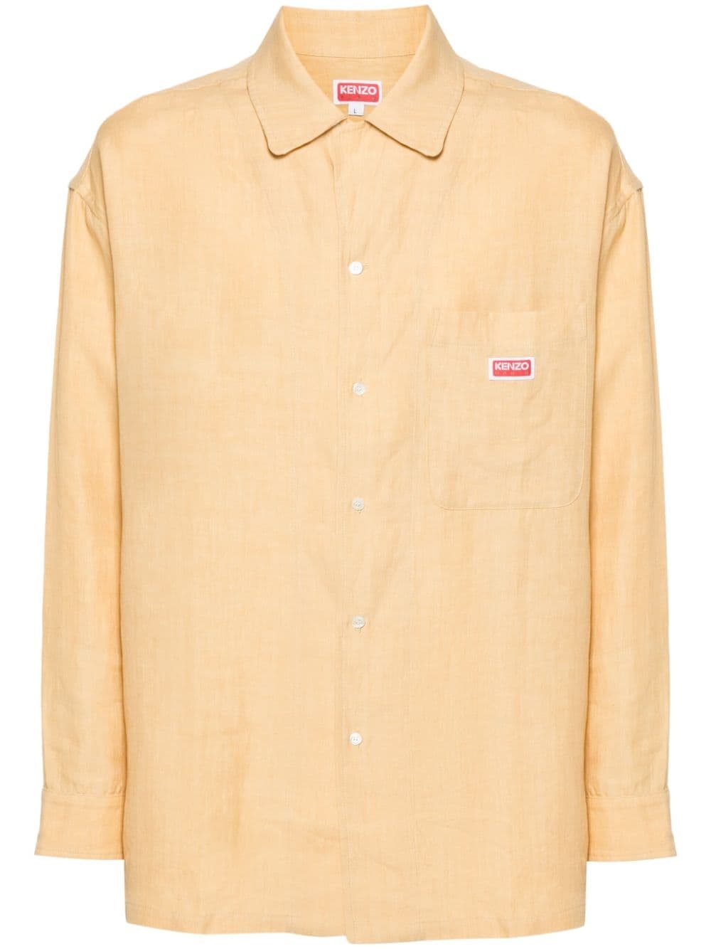 logo-applique linen oversized shirt Highlights - Yellow - Linen/flax - Tonal stitching - Camp collar - Long sleeves - Buttoned cuffs - Chest patch pocket - Applique logo - Side slits - Straight hem Imported Composition Linen/Flax 100% SIZE & FIT Model measurements Height 6 ft 2 in(1.87 m) Bust/Chest 33.46 in(85 cm) Hips 36.22 in(92 cm) Waist 29.52 in(75 cm) FittingInformation Designed to be unstructured, offering a loose fit throughout Made from a midweight non-stretch fabric This piece fits true to size – take your usual size