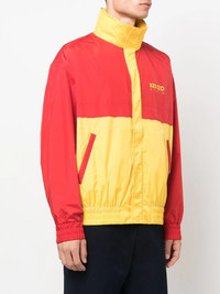 logo colour-block jacket bright red yellow logo patch at the chest round neck concealed front fastening long sleeves two side slit pockets Imported Composition Outer: Polyester 100% Lining: Polyester 100% SIZE & FIT Model measurements Height 6 ft 1 in(1.85 m) Bust/Chest 35.82 in(91 cm) Hips 37.79 in(96 cm) Waist 29.13 in(74 cm) Measurement CHEST 53.54 in(136 cm) SLEEVE LENGTH 23.62 in(60 cm) Shoulder Width 22.44 in(57 cm) FittingInformation This piece fits true to size. We recommend you get your regular size Cut for a loose fit Made with a mid-weight non-stretch fabric Washing instructions Hand Wash