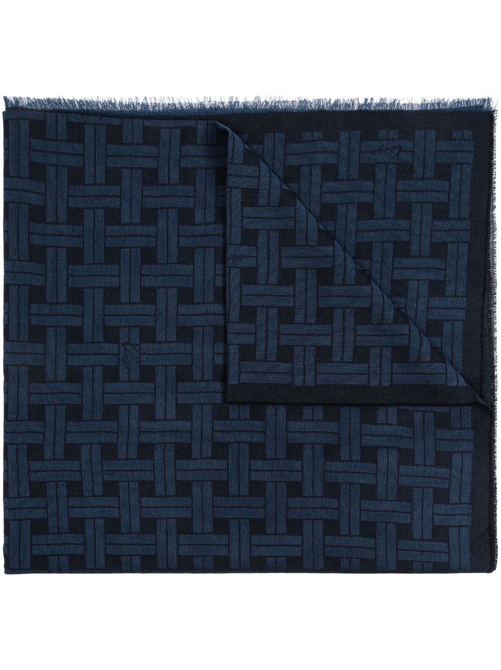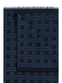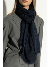 logo-jacquard scarf Highlights - Navy blue - Wool-cotton blend - Jacquard logo motif - Rectangle shape - Frayed edge Made in Italy Composition Wool 70%, Cotton 30% SIZE & FIT Measurement LENGTH 77.16 in(196 cm) WIDTH 64.56 in(164 cm)