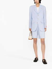 logo-patch buttoned linen blazer Highlights - Sky blue - Cotton-linen blend - Slub texture - Tailored design - Logo patch at the sleeve - Contrast stitching - Classic collar - Front button fastening - Long sleeves - Buttoned cuffs - Two front flap pockets Imported Composition Outer: Linen/Flax 80%, Polyamide 20% Lining: Cotton 100% SIZE & FIT Model measurements Height 5 ft 10 in(1.78 m) Bust/Chest 29.92 in(76 cm) Hips 34.64 in(88 cm) Waist 23.62 in(60 cm) FittingInformation Designed for a relaxed fit, this piece allows for comfort and movement when worn The internal shoulder pads offer a structured shape Made from a midweight non-stretch fabric This piece fits true to size – take your usual size
