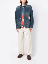 logo-patch denim jacket indigo blue cotton washed denim logo patch to the front logo patch to the rear three front patch pockets front button fastening pointed flat collar long sleeves buttoned cuffs straight hem Imported Composition Cotton 100% SIZE & FIT Model measurements Height 6 ft 2 in(1.87 m) Bust/Chest 36.22 in(92 cm) Hips 37.79 in(96 cm) Waist 28.34 in(72 cm) FittingInformation This piece fits true to size. We recommend you get your regular size Cut for a loose fit Made with a mid-weight fabric