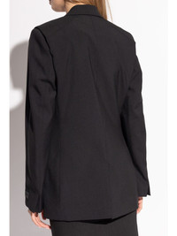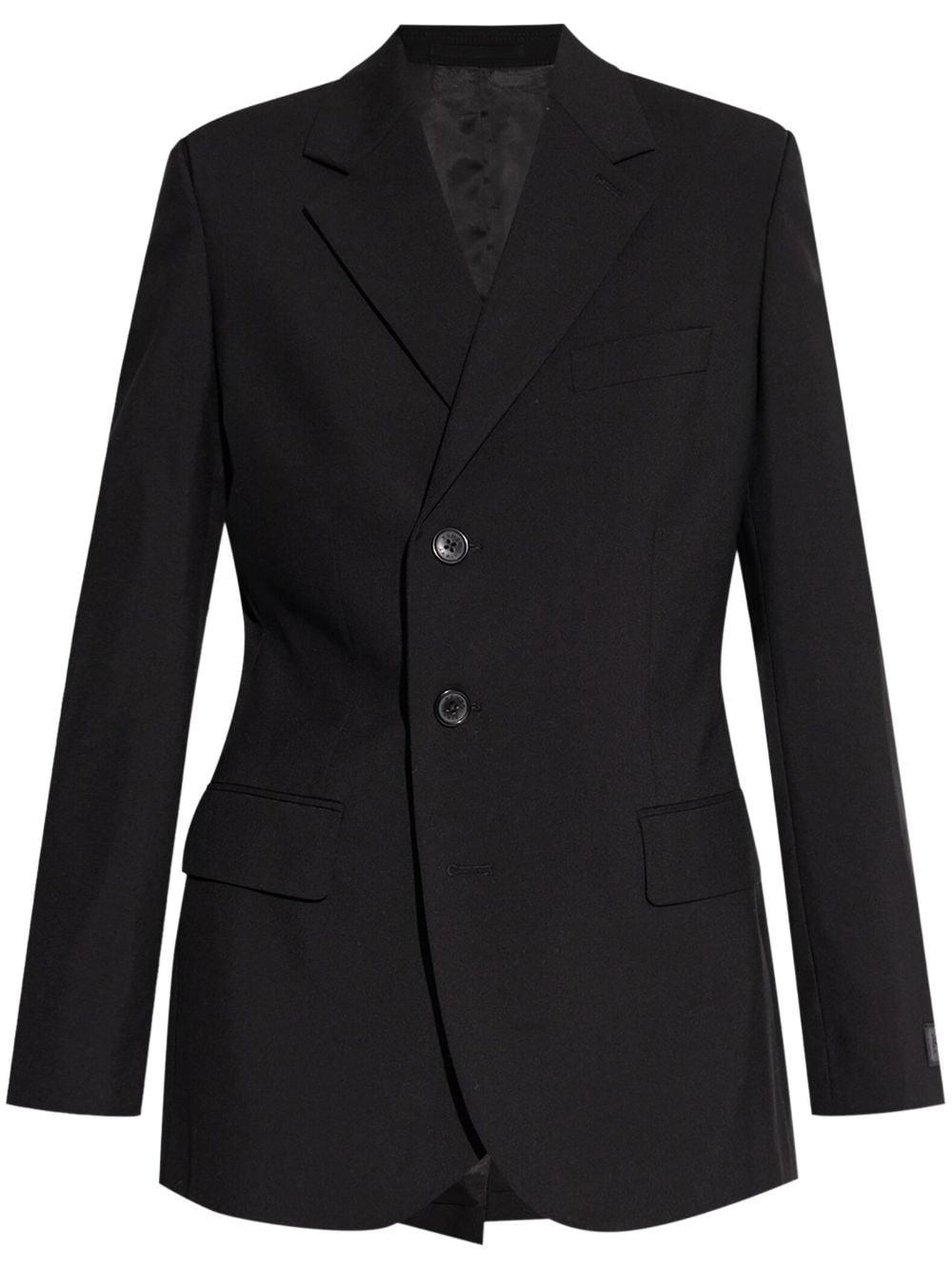 logo patch jacket Highlights - Black - Virgin wool - Notched lapels - Button fastening - Two side flap pockets - Logo patch at the sleeve - Long sleeves - Straight hem Imported Composition Virgin Wool 100%