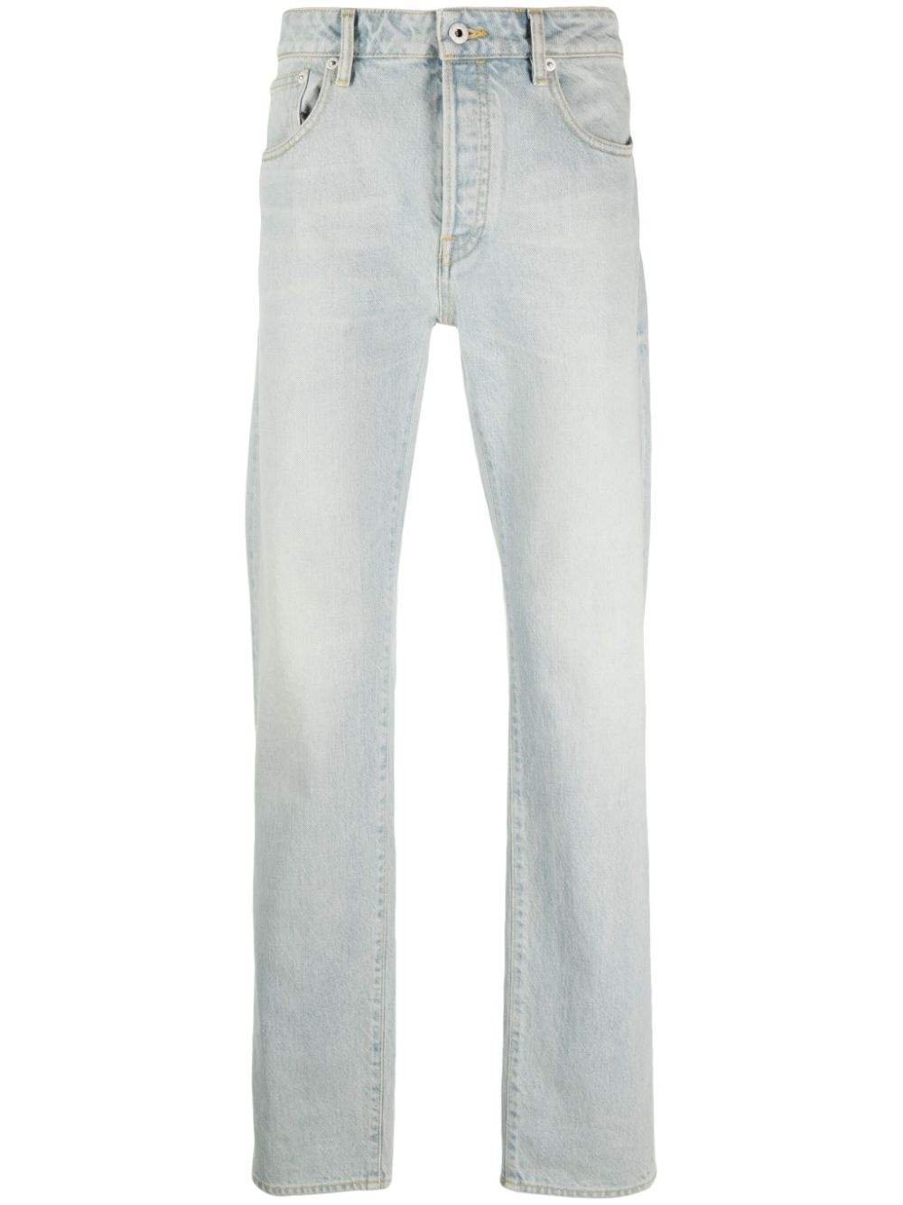 logo-patch slim-fit jeans Kenzo's logo takes the focus of these slim-fit jeans from the brand's AW23 collection. The signature detail appears at the rear, in red, contrasting with the rest of its light blue design. Highlights - Light blue - Cotton - Logo patch to the rear - Mid-rise - Belt loops - Front button fastening - Classic five pockets - Straight leg Imported Composition Cotton 100% SIZE & FIT Model measurements Height 6 ft 2 in(1.87 m) Bust/Chest 36.41 in(92.5 cm) Hips 35.43 in(90 cm) Waist 29.52 in(75 cm) FittingInformation Designed for a slim fit, these jeans offer a comfortable fit that sits just away from the leg Sturdy and hard-wearing, this denim piece offers no stretch This piece fits true to size – take your usual size Washing instructions Machine Wash
