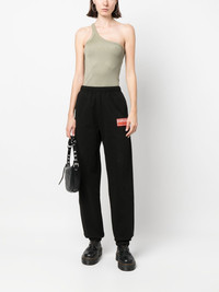 logo-patch track pants black cotton jersey knit logo patch to the side elasticated waistband tapered leg elasticated waistband two side slit pockets rear patch pocket Imported Composition Polyester 100%, Cotton 100% SIZE & FIT Model measurements Height 5 ft 10 in(1.78 m) Bust/Chest 33.46 in(85 cm) Hips 36.22 in(92 cm) Waist 23.22 in(59 cm) FittingInformation This piece fits true to size. We recommend you get your regular size Designed to be loose over the leg with a fitted waist and hem Made with a mid-weight fabric Washing instructions Machine Wash
