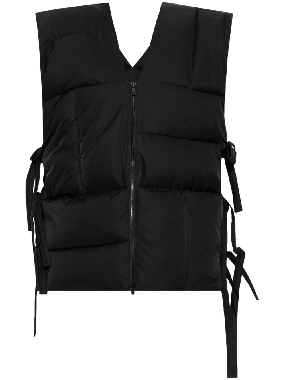 logo-patch vest Highlights - Black - Sleeveless - Front zip fastening - V-neck - Adjustable side straps - Logo patch to the rear Imported Composition Polyamide 52%, Polyester 48%