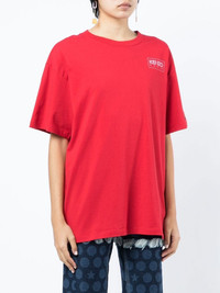 logo-print cotton T-shirt red cotton logo print to the rear round neck short sleeves straight hem Imported Composition Cotton 100% SIZE & FIT Model measurements Height 5 ft 10 in(1.77 m) Bust/Chest 31.49 in(80 cm) Hips 35.43 in(90 cm) Waist 25.19 in(64 cm) FittingInformation This piece fits true to size. We recommend you get your regular size Cut for an oversized fit Made with a mid-weight fabric Washing instructions Machine Wash