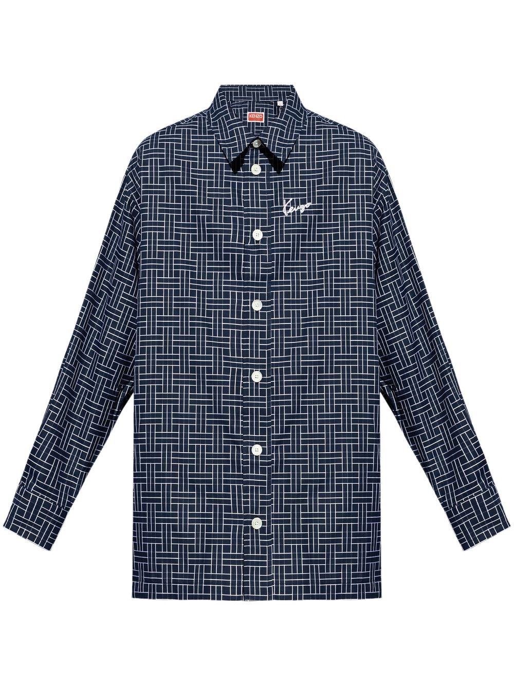 logo-print shirt Highlights - Navy blue - Cotton - Check pattern - Straight-point collar - Embroidered logo - Classic collar - Long sleeves - Buttoned cuffs - Front button fastening - Straight hem Imported Composition Cotton 100% SIZE & FIT FittingInformation Designed to be unstructured, offering a loose fit throughout Made from a midweight non-stretch fabric This piece fits true to size – take your usual size