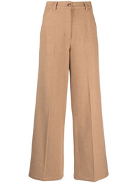 logo-tag felted wide-leg trousers Highlights - Light brown - Wool blend - Felted - Logo tag - Pressed crease - Belt loops - Concealed fly and button fastening - Wide leg - Ankle-length - Two side inset pockets - Two rear patch pockets Imported Composition Outer: Wool 70%, Polyamide 30% Lining: Acetate 60%, Cupro 40% SIZE & FIT Model measurements Height 5 ft 10 in(1.77 m) Bust/Chest 31.88 in(81 cm) Hips 36.22 in(92 cm) Waist 24.01 in(61 cm) FittingInformation Designed with a wide-leg cut, these trousers allow for a close fit at the waist and offer a loose and roomy fit over the leg Made from a midweight non-stretch fabric This piece fits true to size – take your usual size Washing instructions Dry Clean Only