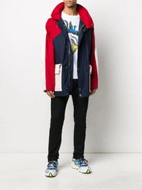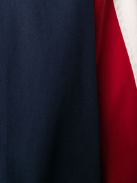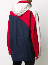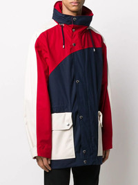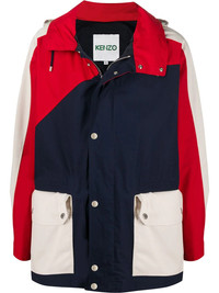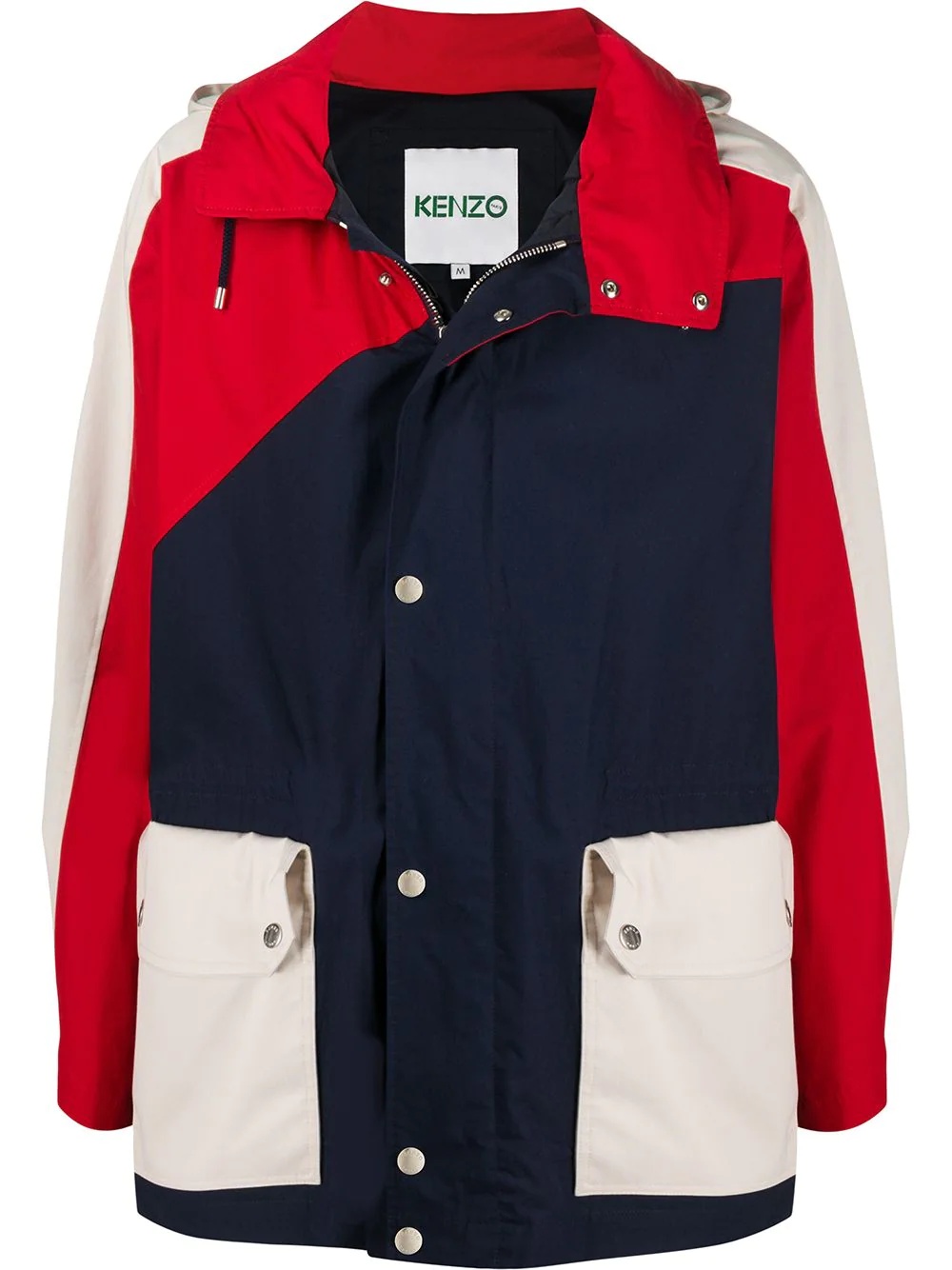 long colour block parka jacket Colour block cool, this parka coat is the perfect shield from the cold. Kenzo harmonise colour and shape in an exuberant and sophisticated way. Midnight blue, red and white colour block parka coat featuring a stand up collar, a drawstring fastening, a button fastening, a concealed zip fastening, long sleeves, front flap pockets and a long length. Imported Composition Outer: Cotton 80%, Polyurethane 20% Lining: Cotton 100% SIZE & FIT Model measurements Height 6 ft 2 in(1.87 m) Bust/Chest 38.18 in(97 cm) Hips 36.61 in(93 cm) Waist 29.13 in(74 cm) FittingInformation This piece fits true to size. We recommend you get your regular size Cut for a loose fit Made with a mid-weight non-stretch fabric Washing instructions Hand Wash