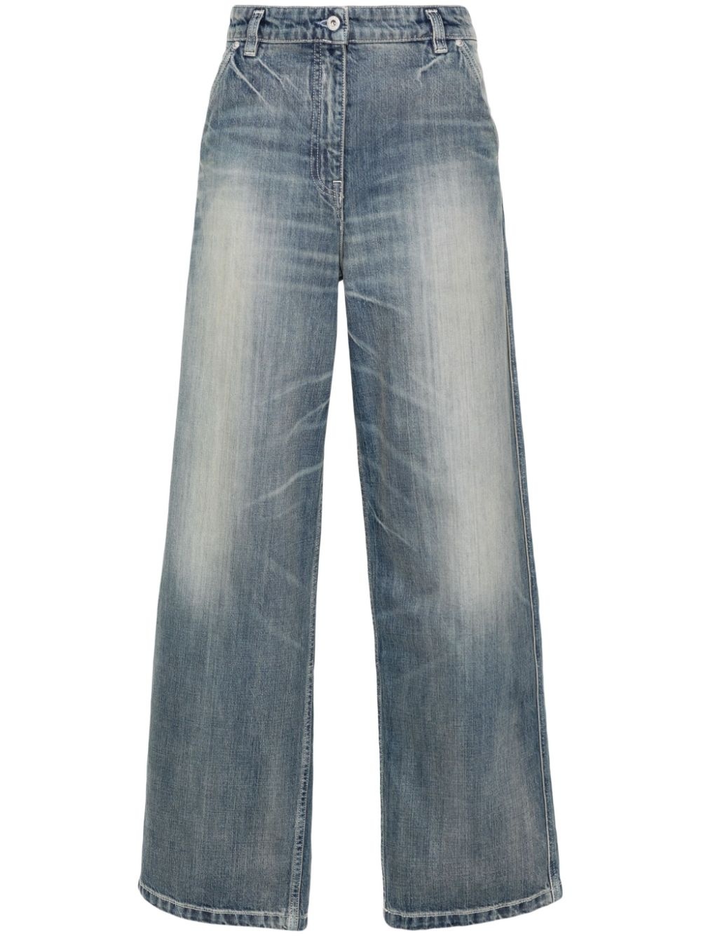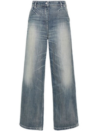 low-rise wide-leg jeans Highlights - Medium blue - Cotton - Denim - Stonewashed - Whiskering effect - Embroidered logo and slogan to the rear - Belt loops at the waist - Classic five-pocket design - Wide leg - Rear buckle fastening - Button and concealed zip fly fastening Imported Composition Cotton 100% SIZE & FIT Model measurements Height 5 ft 10 in(1.77 m) Bust/Chest 33.07 in(84 cm) Hips 37 in(94 cm) Waist 24.8 in(63 cm) FittingInformation Designed for a straight-leg fit, these jeans allow for a close fit at the waist and an unrestricted and comfortable fit over the leg Sturdy and hard-wearing, this denim piece offers no stretch This piece fits true to size – take your usual size Washing instructions Machine Wash