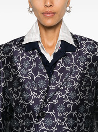 Marguerite blazer Highlights - Midnight blue - Patterned jacquard - Notched lapels - Off-centre front button fastening - Shoulder pads - Long sleeves with split cuffs - Chest welt pocket - Two front flap pockets - American rear vent - Straight hem - Satin lining Imported Composition Outer: Polyester 100% Lining: Viscose 100% SIZE & FIT Model measurements Height 5 ft 10 in(1.78 m) Bust/Chest 33.07 in(84 cm) Hips 36.61 in(93 cm) Waist 24.8 in(63 cm) FittingInformation Designed for a slim fit that sits just away from the body offering a close yet comfortable fit The internal shoulder pads offer a structured shape Made from a midweight non-stretch fabric This piece fits true to size – take your usual size