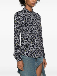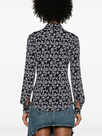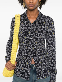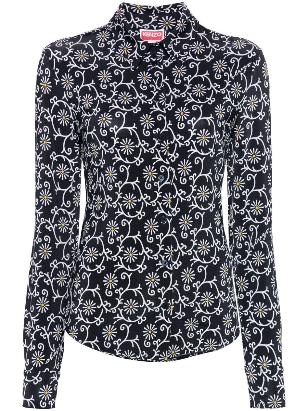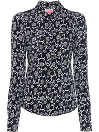 Marguerite button-up shirt Highlights - Midnight blue - Stretch-jersey - All-over floral print - Classic collar - Front button fastening - Long sleeves - Buttoned cuffs - Curved hem Imported Composition Viscose 91%, Elastane 9% SIZE & FIT Model measurements Height 5 ft 11 in(1.8 m) Bust/Chest 31.49 in(80 cm) Hips 35.82 in(91 cm) Waist 24.8 in(63 cm) FittingInformation Designed for a slim fit that sits just away from the body offering a close yet comfortable fit Made from a lightweight stretch fabric, this piece offers elasticity and flexibility when worn This piece fits true to size – take your usual size