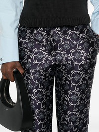 Marguerite jacquard cropped trousers Highlights - Midnight blue - Cotton - Patterned jacquard - All-over floral print - Belt loops - Concealed front button, hook and zip fastening - Cropped leg - Two side slit pockets - Short side slits - Straight hem - Mid-length Imported Composition Lining: Viscose 100% Outer: Cotton 100%, Polyester 100% SIZE & FIT Model measurements Height 5 ft 10 in(1.77 m) Bust/Chest 32.28 in(82 cm) Hips 35.03 in(89 cm) Waist 25.19 in(64 cm) FittingInformation Designed with a cigarette cut, these trousers allow for a close fit at the waist and offer an unrestricted fit through to the ankle Cropped in length Made from a midweight non-stretch fabric This piece fits true to size – take your usual size