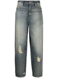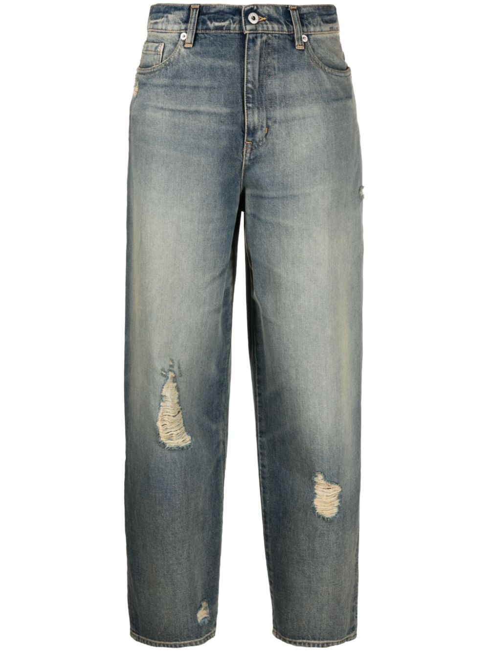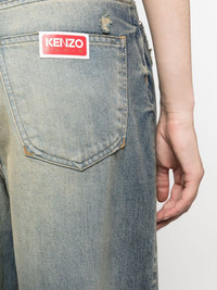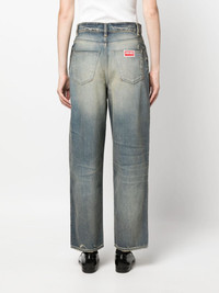 mid-rise tapered jeans Embodying Kenzo's casual mood, these tapered jeans arrive in a most-loved distressed design. The loose silhouette is accented with faded effects and ripped details, lending an effortless and edgy feel. Highlights - Blue - Cotton - Denim - Stonewashed - Faded effect - Ripped detailing - Mid-rise - Belt loops - Concealed fly and button fastening - Classic five pockets - Logo patch to the rear - Tapered leg Imported Composition Cotton 100% SIZE & FIT Model measurements Height 5 ft 10 in(1.79 m) Bust/Chest 32.67 in(83 cm) Hips 34.25 in(87 cm) Waist 24.4 in(62 cm) FittingInformation Designed for a tapered fit, these jeans allow a close fit at the waist and a loose unrestricted fit over the leg with a closer fit towards the ankle Sturdy and hard-wearing, this denim piece offers no stretch This piece fits true to size – take your usual size Washing instructions Machine Wash