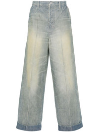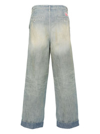mid-rise tapered-leg jeans Highlights - Medium blue - Cotton - Denim - Bleached effect - Seam detailing - Logo patch to the rear - Belt loops - Two diagonal pockets to the sides - Two rear welt pockets - Turn-up cuffs - Front button fastening Imported Composition Cotton 100%