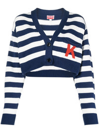 Nautical Stripes cropped cardigan This cotton cardigan from Kenzo is detailed with blue and white stripes in a nod to the label’s nautical inspiration. The cropped silhouette and contrasting red ‘K’ lettering contribute to a bold look. Imported Composition Cotton 100% SIZE & FIT Model measurements Height 5 ft 10 in(1.79 m) Bust/Chest 31.49 in(80 cm) Hips 35.03 in(89 cm) Waist 23.62 in(60 cm) Measurement SLEEVE LENGTH 20.07 in(51 cm) LENGTH 15.74 in(40 cm) BUST 40.15 in(102 cm) Washing instructions Machine Wash