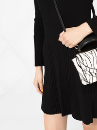 openwork knit dress Best known for their audacious motifs and streetwear-inspired shapes, look to Kenzo to keep your casual wardrobe up to date. This black openwork knit dress features a round neck, long sleeves, a flared skirt, pleated details, a short length and a stretch fit. Imported Composition Viscose 70%, Polyester 30% SIZE & FIT Model measurements Height 5 ft 9 in(1.75 m) Bust/Chest 31.88 in(81 cm) Hips 34.64 in(88 cm) Waist 22.83 in(58 cm) FittingInformation This piece fits true to size. We recommend you get your regular size Designed for a close fit at the bust and waist, but loose at the hip Made with a mid-weight fabric Washing instructions Machine Wash