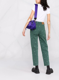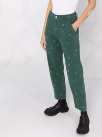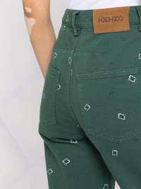 paisley-print cropped trousers Kenzo goes colourful with these cropped trousers. Made from cotton in a green hue, this design is decorated with paisley motifs throughout. Highlights - Green - Cotton - Paisley print - High-waisted - Straight leg - Cropped leg - Belt loops - Concealed rear fastening - Two side slit pockets - Two rear patch pockets Imported Composition Lining: Cotton 100% Outer: Cotton 100%, Leather 100% SIZE & FIT Model measurements Height 5 ft 10 in(1.77 m) Bust/Chest 32.67 in(83 cm) Hips 35.43 in(90 cm) Waist 23.62 in(60 cm) FittingInformation This piece fits true to size. We recommend you get your regular size Designed to be fitted at the waist and hips, loose over the leg Made with a mid-weight non-stretch fabric Washing instructions Machine Wash