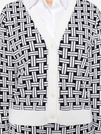 patterned-jacquard cardigan Highlights - White/black - Cotton-wool blend - Knitted construction - Geometric patterned jacquard - Jacquard logo motif - Ribbed trim - V-neck - Long sleeves - Ribbed cuffs and hem - Front button fastening Imported Composition Cotton 66%, Wool 33%, Lycra 1% SIZE & FIT Model measurements Height 5 ft 9 in(1.75 m) Bust/Chest 31.88 in(81 cm) Hips 34.64 in(88 cm) Waist 24.01 in(61 cm) FittingInformation Designed for a relaxed fit, this piece allows for comfort and movement when worn Made with a midweight knit, this piece offers some stretch This piece fits true to size – take your usual size