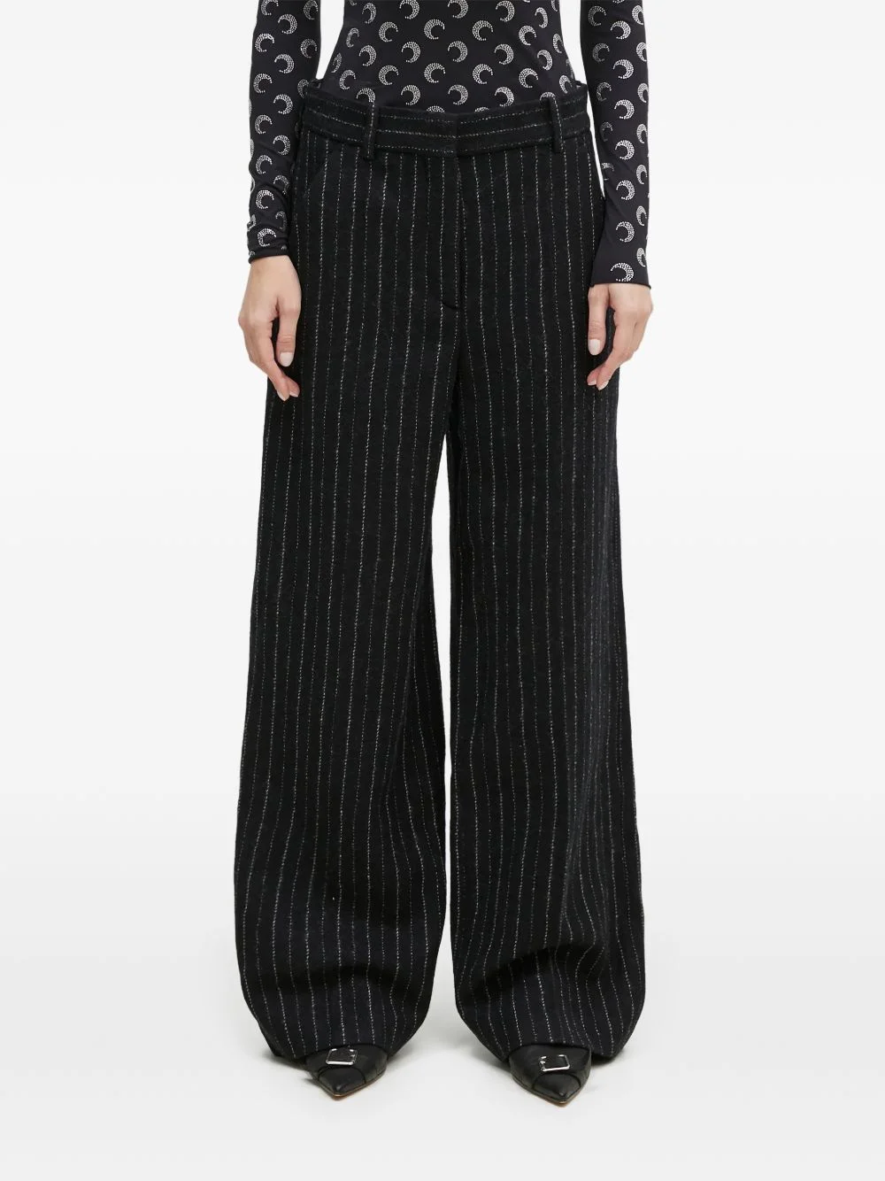 pinstripe palazzo pants Highlights - Black - Pinstripe pattern - Belt loops - Zip fastening Imported Composition Outer: Virgin Wool 100% Lining: Cotton 100%, Viscose 100% Washing instructions Read Manufacturer Guidelines