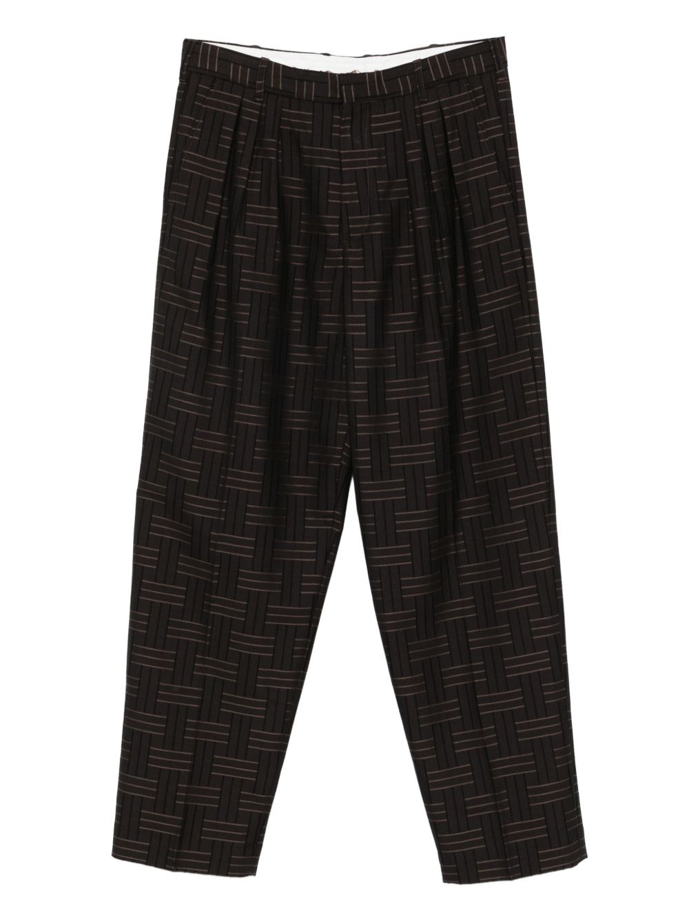 pleated patterned straight-leg trousers Highlights - Brown - Pleated design - Geometric pattern - Straight leg - Concealed fastening Imported Composition Lining: Viscose 100%, Cotton 100% Outer: Virgin Wool 80%, Cotton 20% SIZE & FIT Model measurements Height 6 ft 2 in(1.88 m) Bust/Chest 37.4 in(95 cm) Hips 38.58 in(98 cm) Waist 31.1 in(79 cm) Washing instructions Dry Clean Only