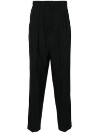 pleated wool tailored trousers Highlights - Black - Virgin wool - Logo patch to the rear - Belt loops - Pleat detailing - Hook and zip fly fastening - Pressed crease - Straight leg - Two side slit pockets - Two rear button-fastening jetted pockets Imported Composition Lining: Cotton 100%, Acetate 60%, Cupro 40% Outer: Virgin Wool 100% SIZE & FIT Model measurements Height 6 ft 1 in(1.86 m) Bust/Chest 37.4 in(95 cm) Hips 36.22 in(92 cm) Waist 29.52 in(75 cm) FittingInformation Designed for a relaxed straight leg, allowing a comfortable and loose fit over the leg Made from a midweight non-stretch fabric This piece fits true to size – take your usual size