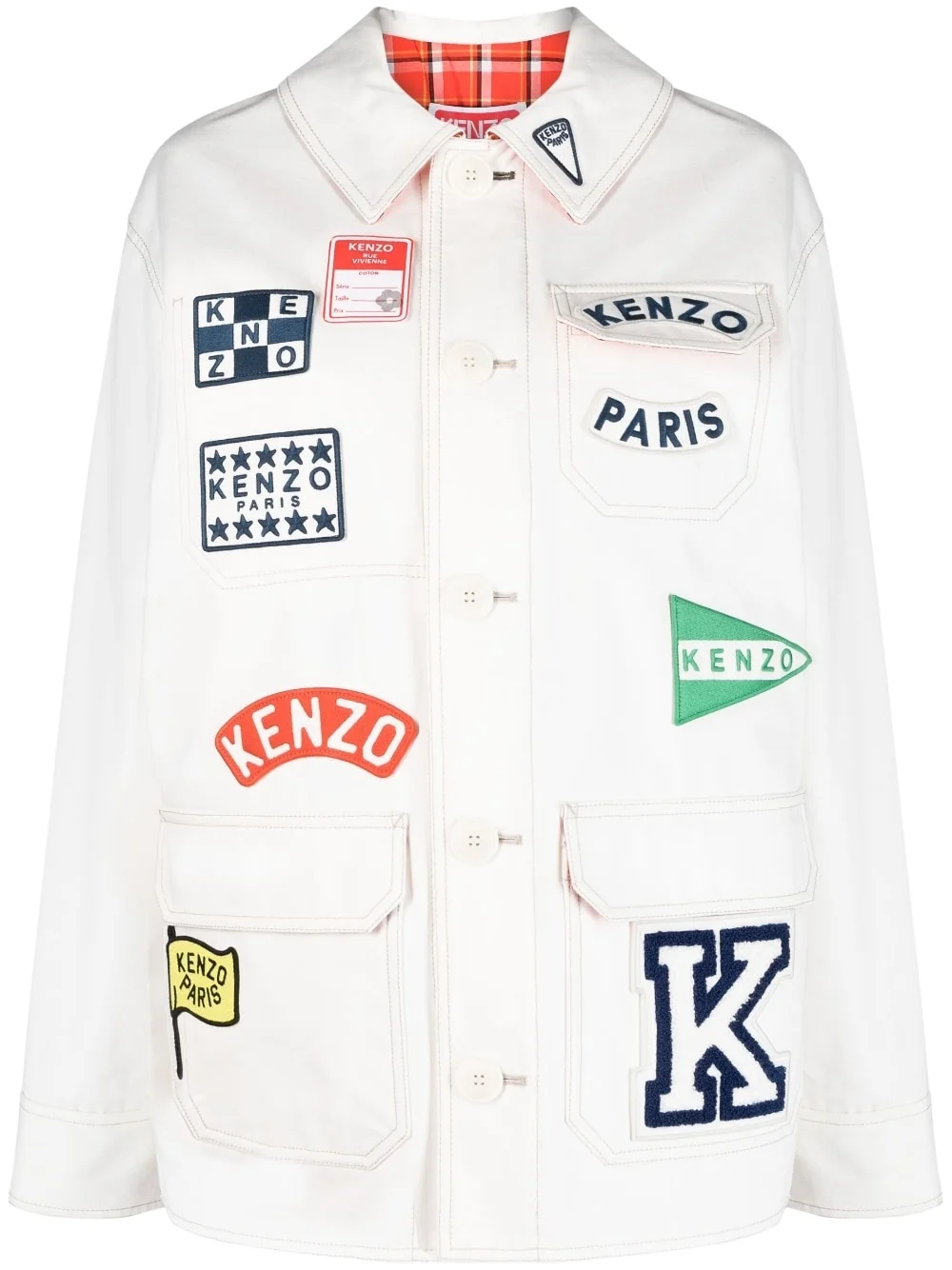 Sailor logo-applique jacket Made from durable cotton canvas, this jacket from Kenzo is cut to a boxy silhouette. It’s enlivened with nautical-inspired logo appliques in a nod to the label’s sailor-themed SS23 collection. Highlights - White/multicolour - Cotton - Applique detailing - Classic collar - Front button fastening - Front flap pockets - Long sleeves - Buttoned cuffs - Straight hem Imported Composition Lining: Cotton 100% Outer: Cotton 100%, Polyester 100%, Paper 100%, Acrylic 50%, Wool 50% SIZE & FIT Measurement CHEST 55.11 in(140 cm) SLEEVE LENGTH 25.19 in(64 cm) LENGTH 29.92 in(76 cm) Washing instructions Dry Clean Only
